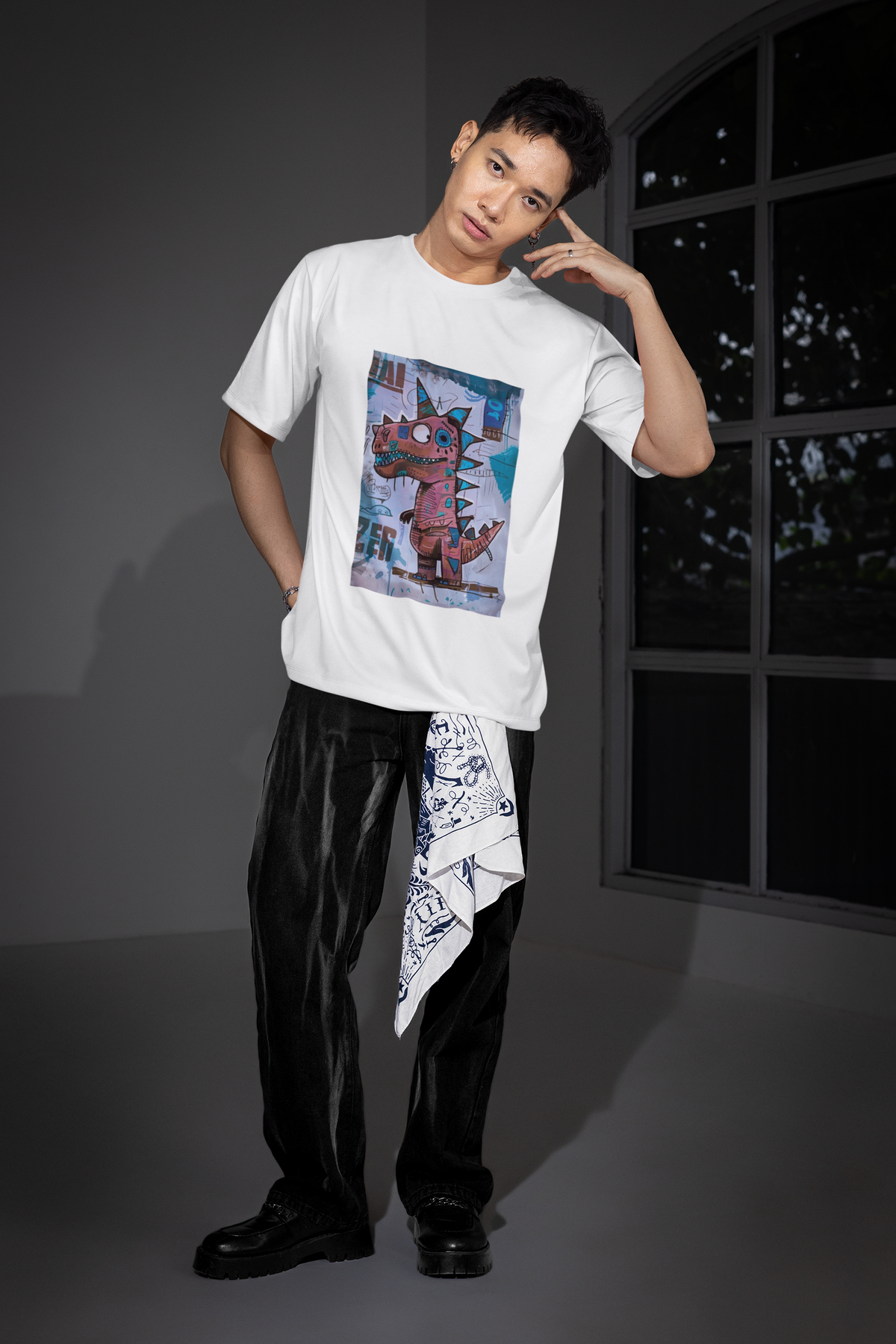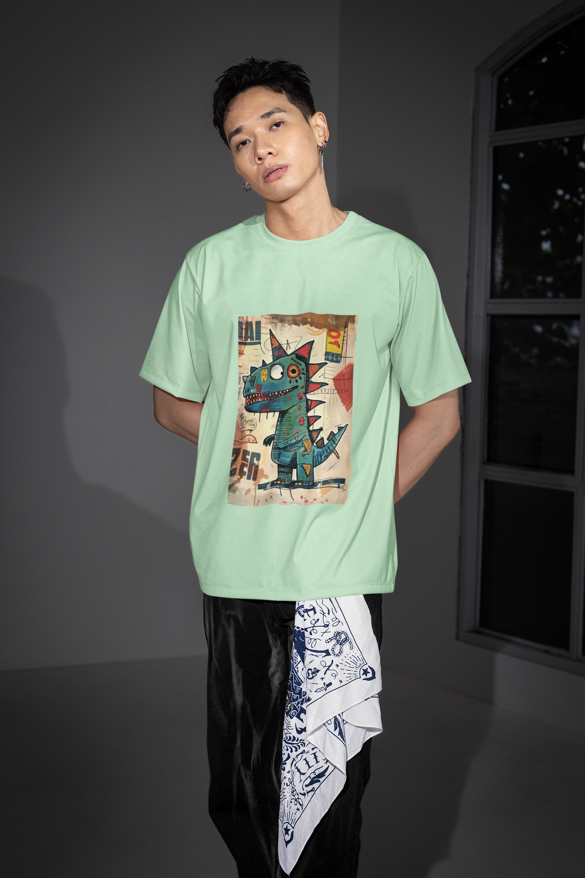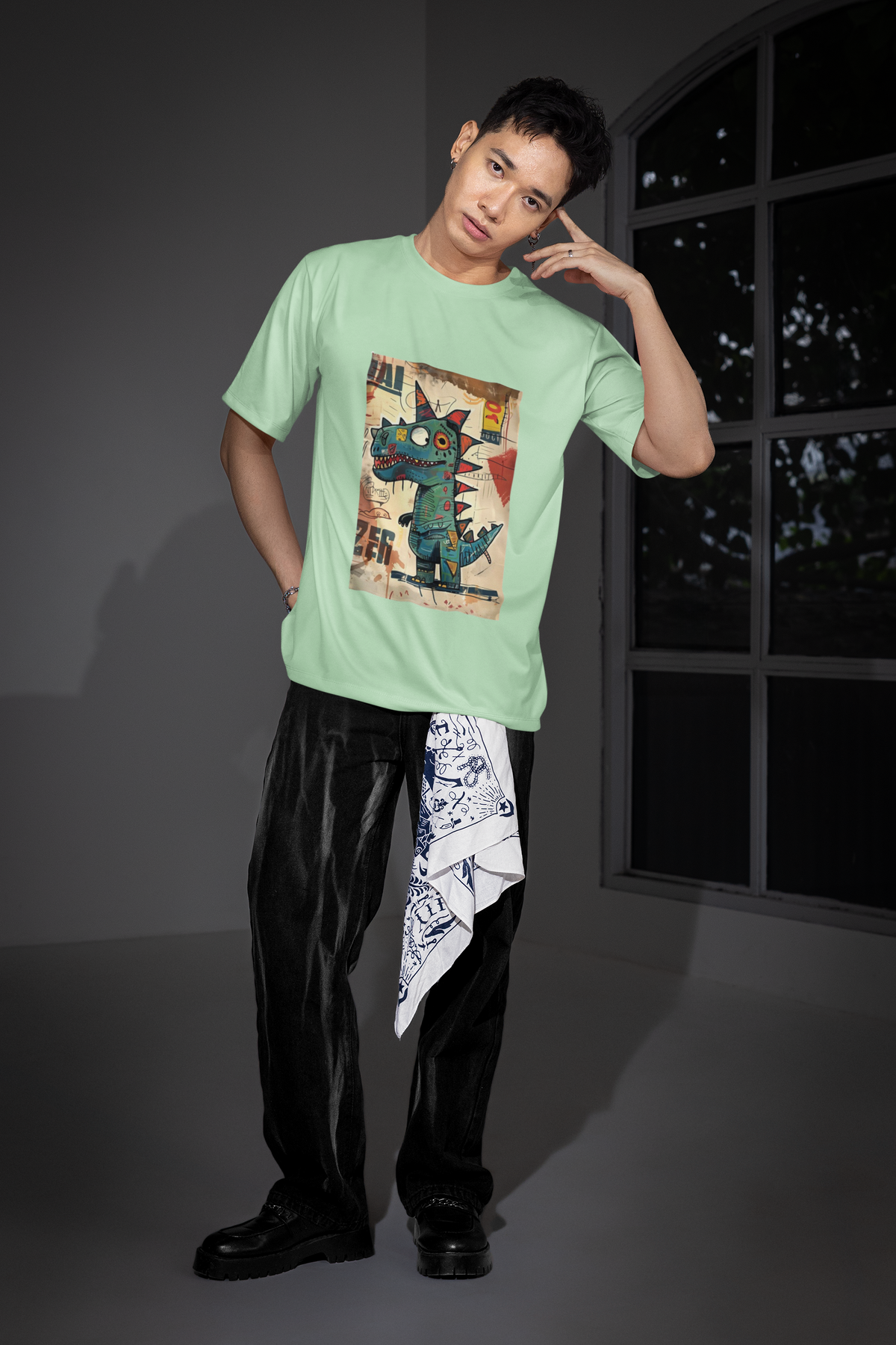 "DinoVibe" tee design embodies a combination of playful dinosaur imagery fused with a contemporary, dynamic energy that makes it a fun and memorable fashion statement."