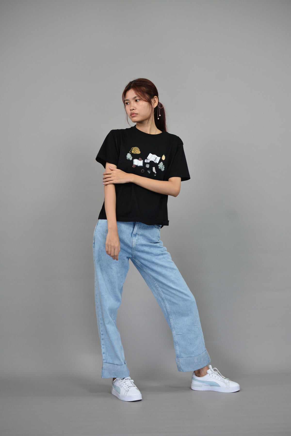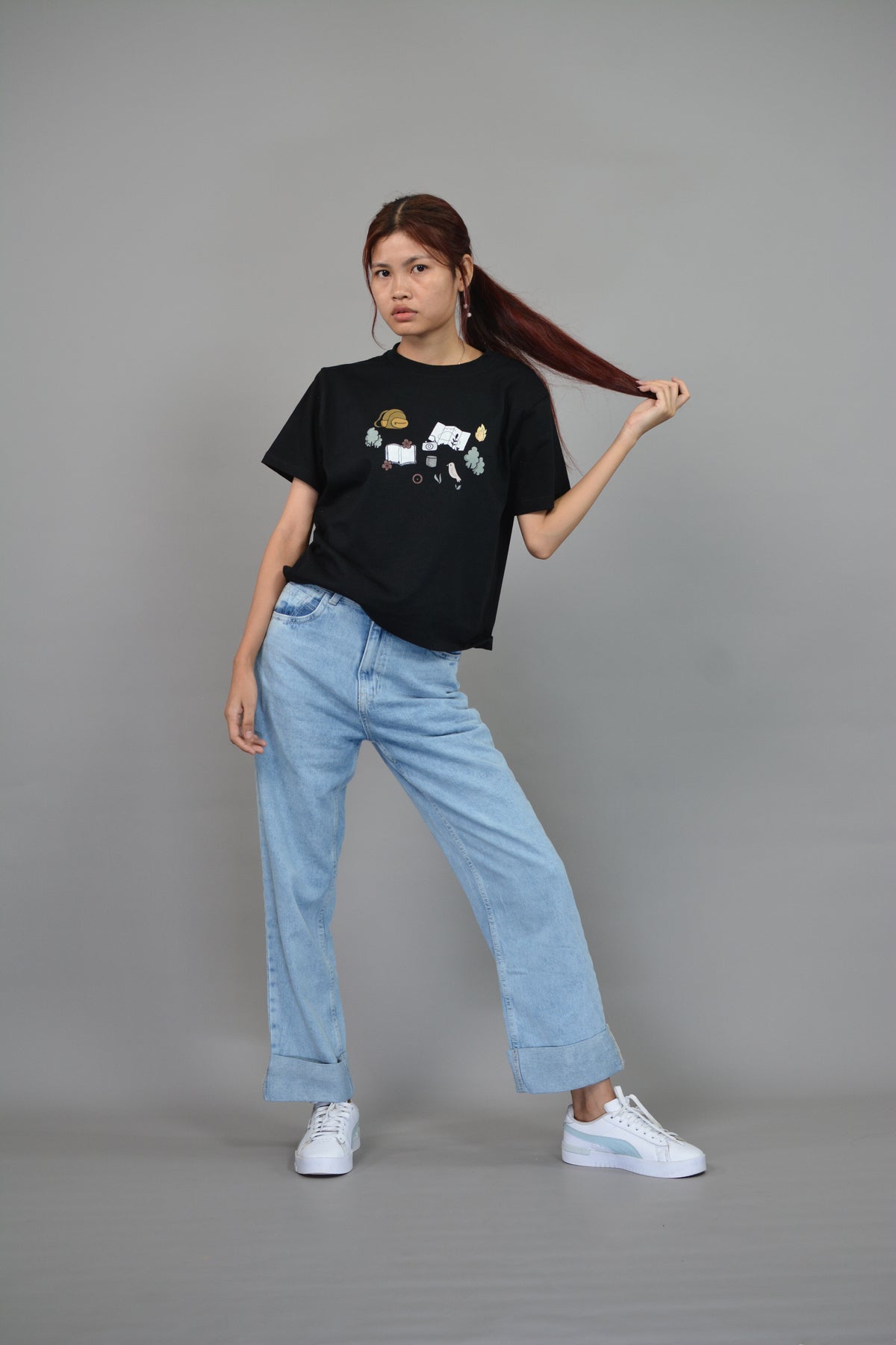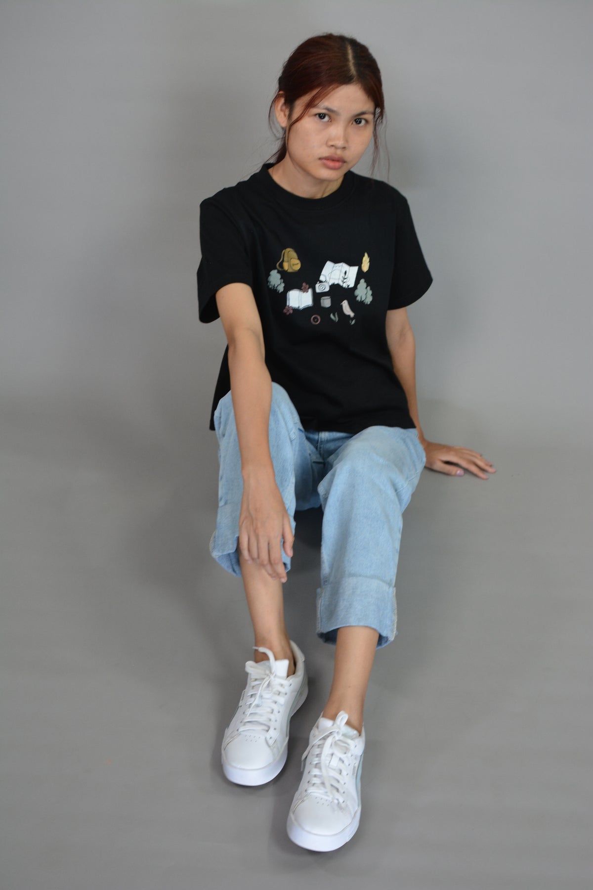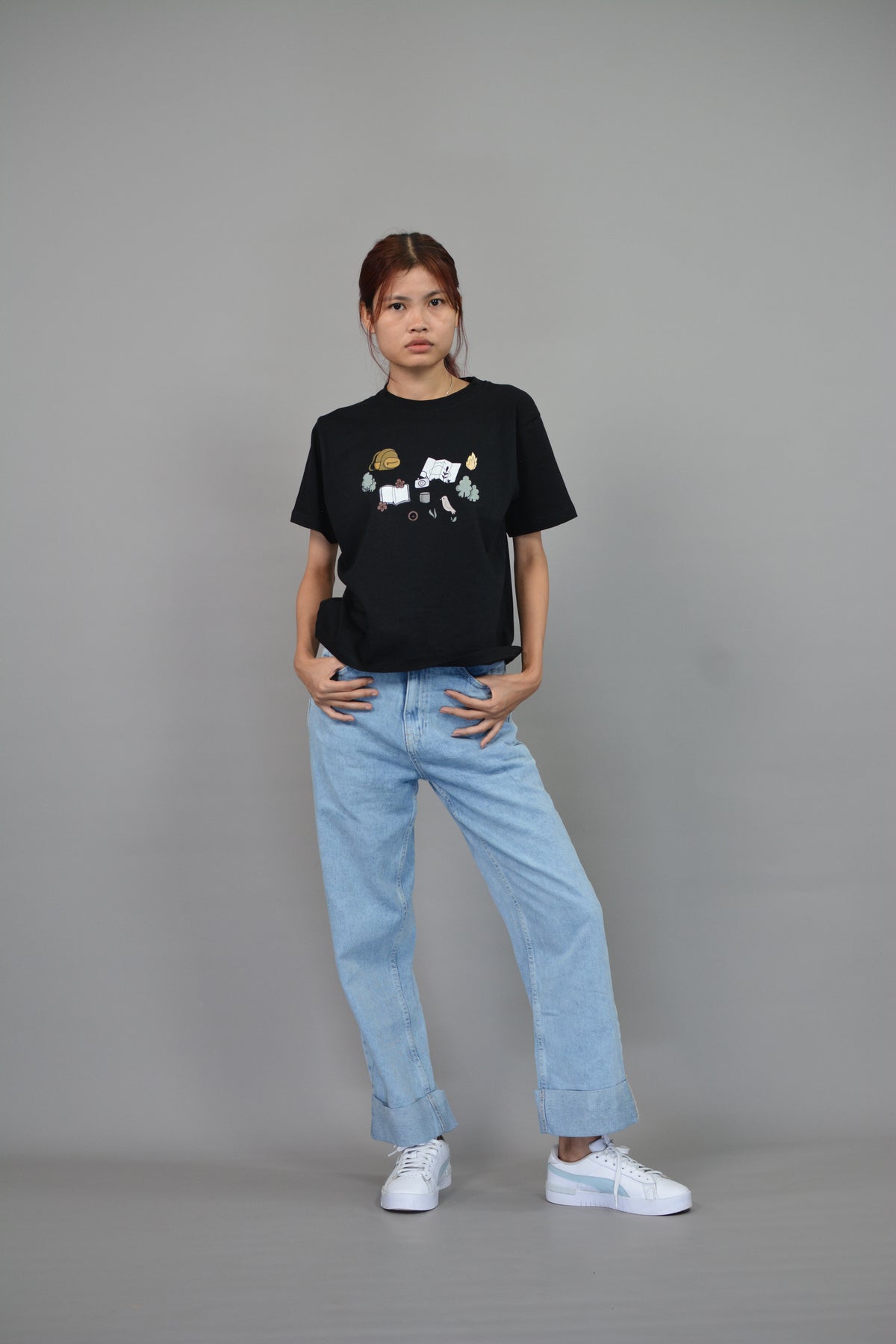 A playful tribute to the free-spirited explorer, Let’s Get Lost brings together a bundle of charming, hand-drawn icons — a curious bird, an open map, a vintage camera, a well-worn book, towering trees, a crackling campfire, and a trusty backpack. Each symbol tells a piece of the story: the joy of discovery, the warmth of campfire nights, and the thrill of wandering off the beaten path. Perfect for those who crave adventures big or small, this design turns your outfit into a passport for the soul.