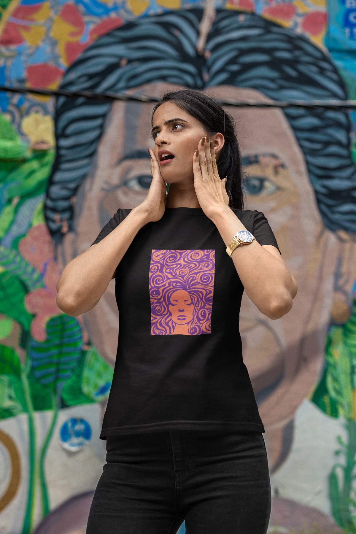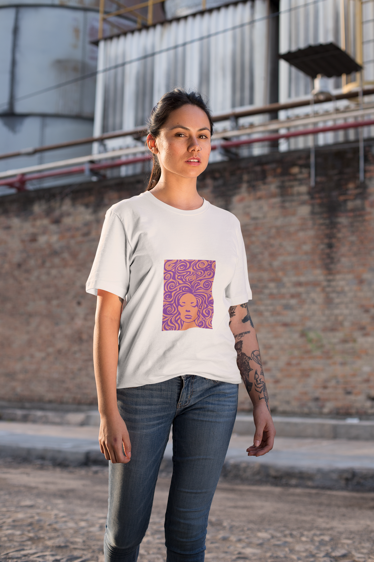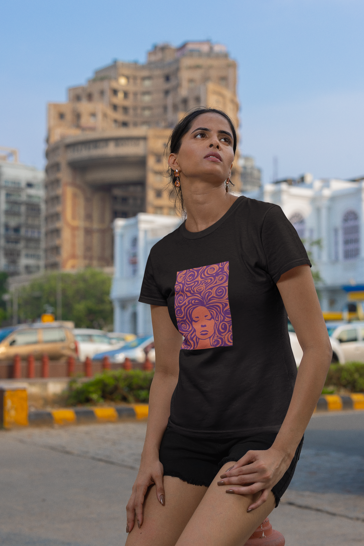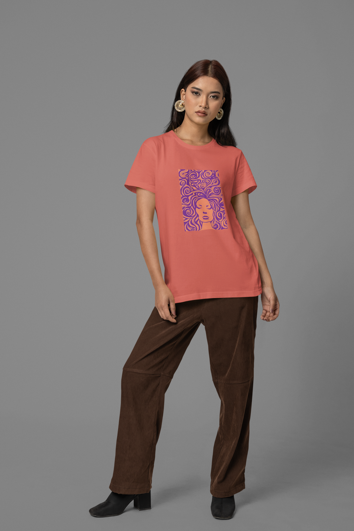 Made from premium-grade cotton, it offers a luxuriously soft feel with breathable comfort that lasts all day. The high-quality, fabric-safe print captures the "Mystic Medusa: Power in Every Glance, This design concept emphasizes her legendary ability to influence through her eyes—symbolizing danger, allure, and mystic strength.