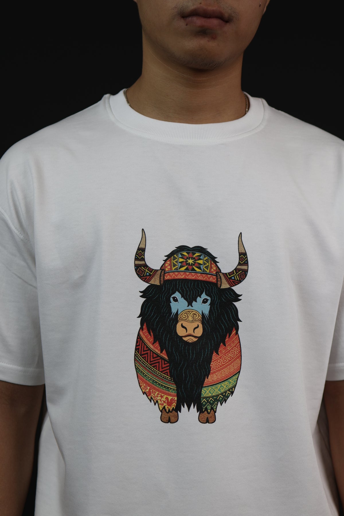 Inspired by the strength and pride of Arunachal Pradesh, this T-shirt showcases the majestic Mithun—revered as a symbol of prosperity—blended with intricate traditional motifs. Crafted from premium french terry cotton, it’s more than just a tee; it’s a tribute to the roots, resilience, and heritage of the eastern Himalayas. Comfortable, stylish, and deeply cultural, this piece lets you carry a piece of Arunachal’s spirit wherever you go.