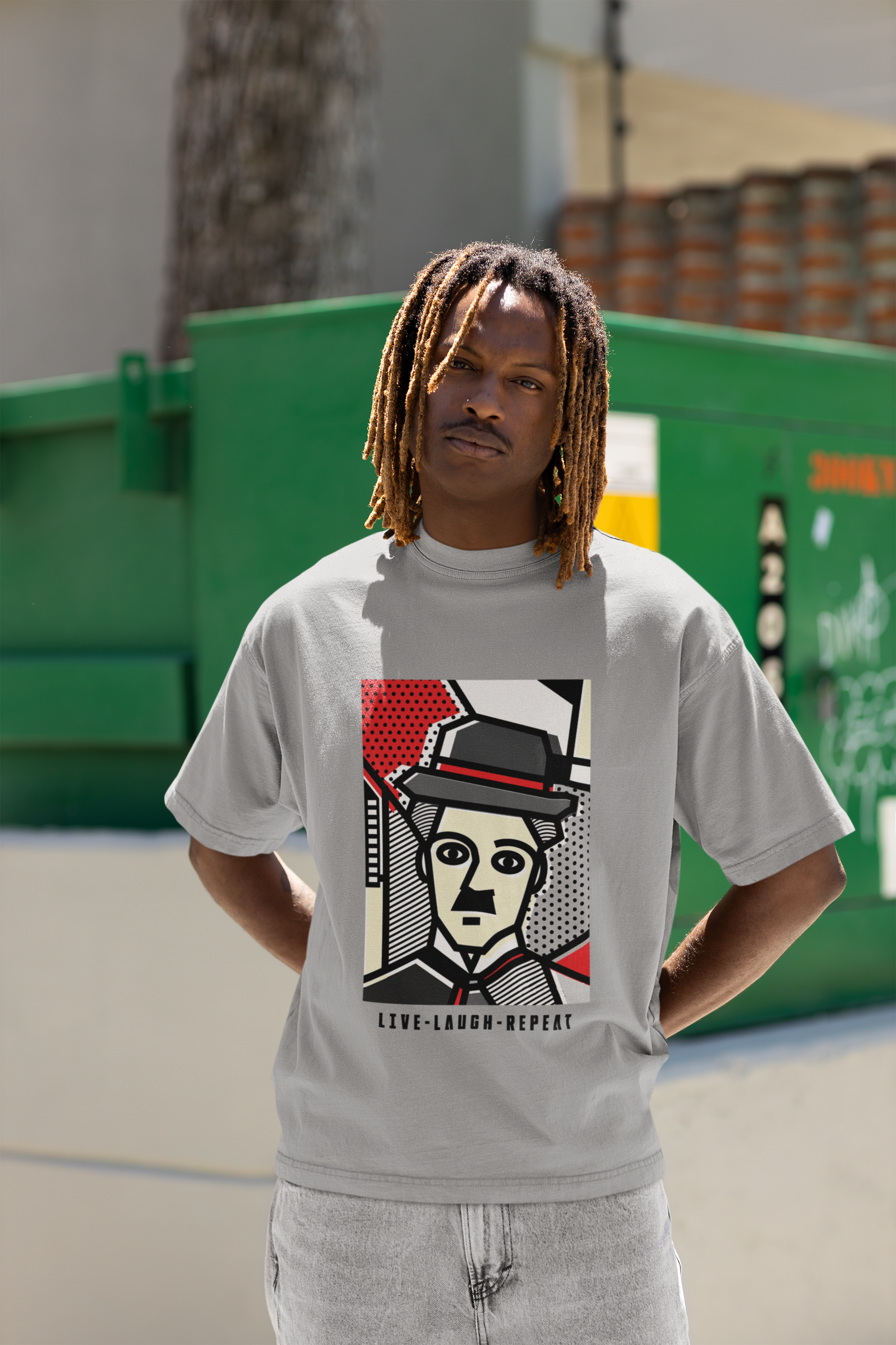 The "Charlie’s Laugh Loop" tee design is characterized by a playful, cyclic theme reflecting the phrase "leave laugh repeat." The design typically incorporates bold, casual typography arranged in a loop or circular manner to visually emphasize repetition and continuous fun.