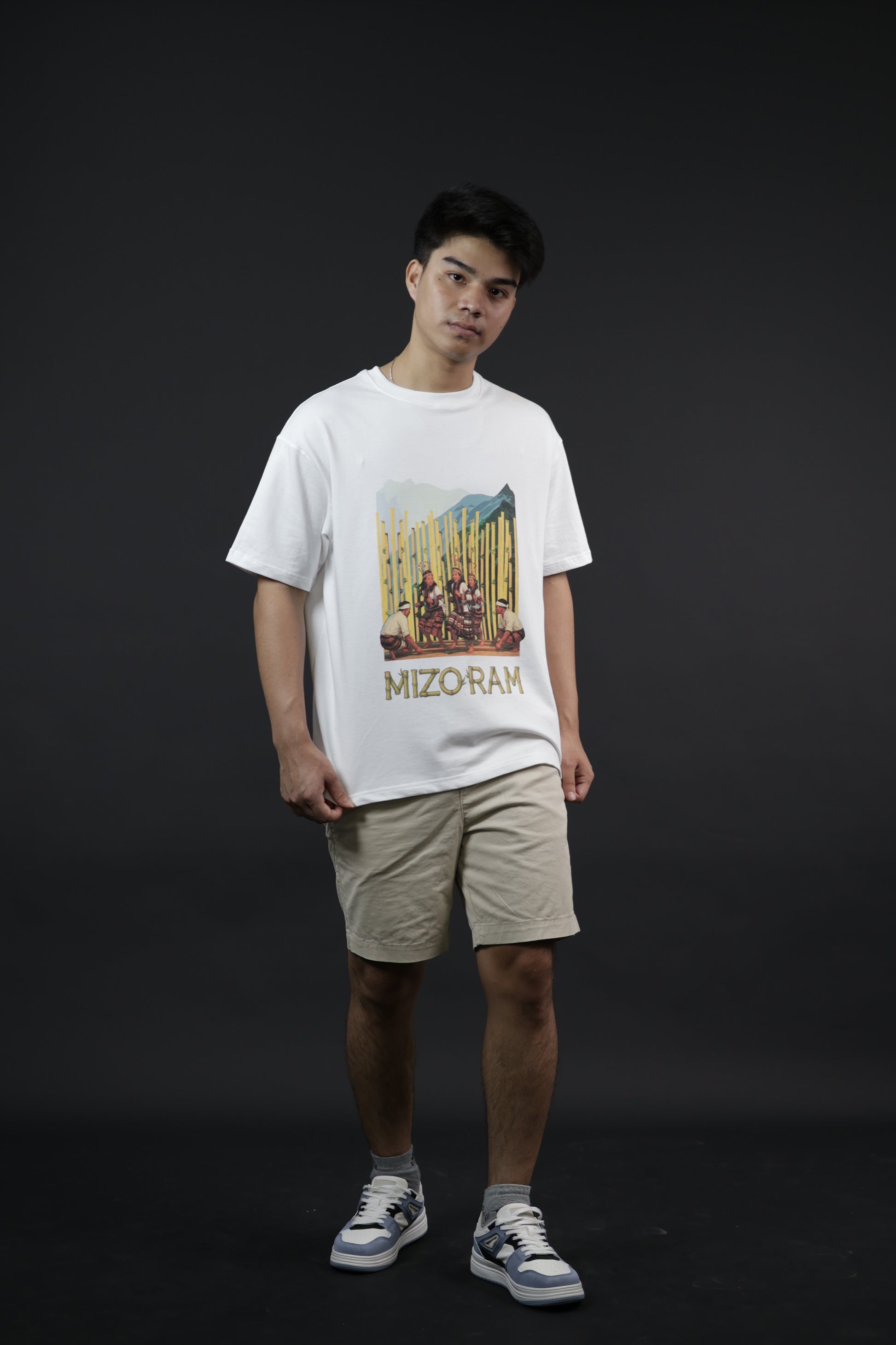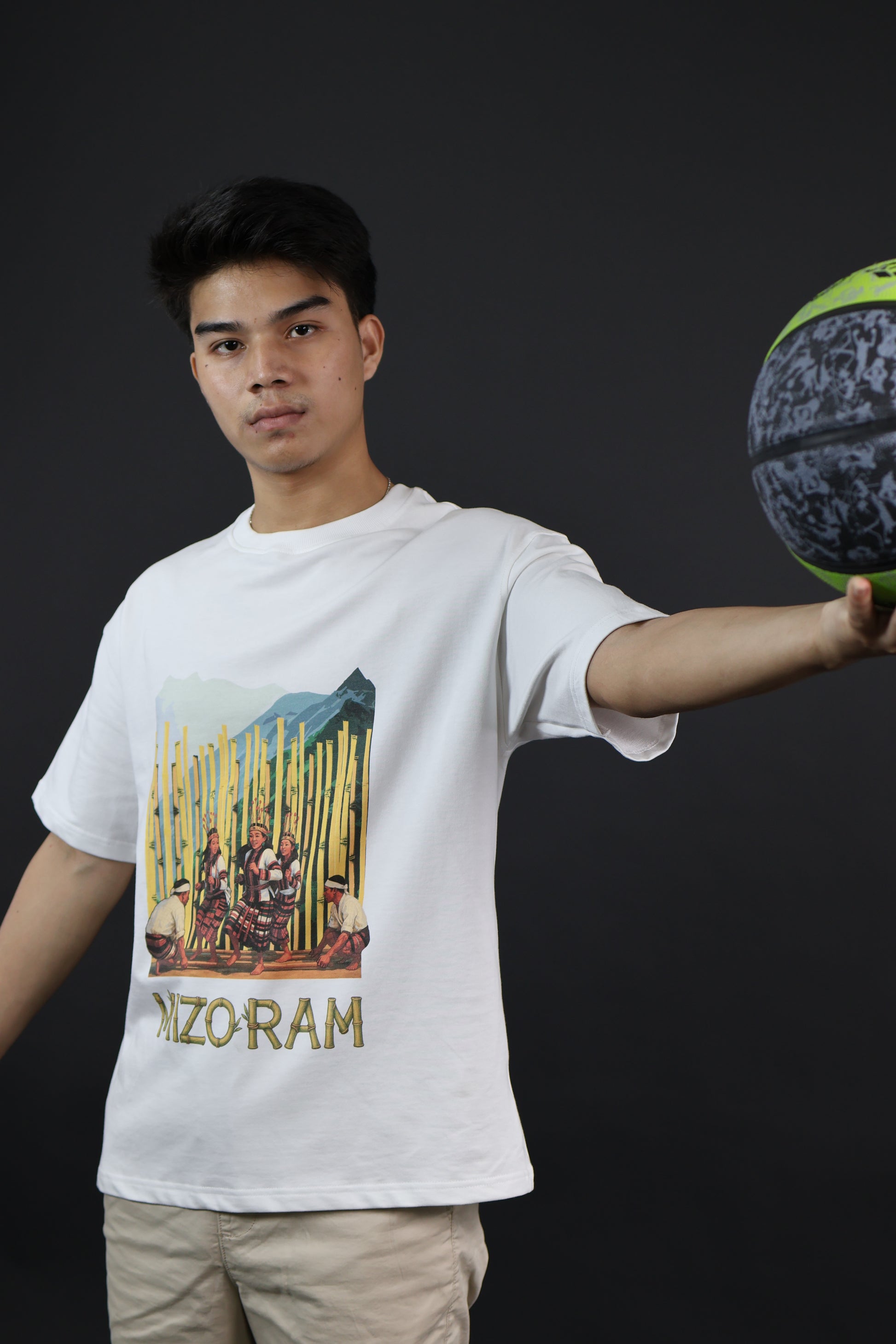 Celebrate the spirit of Mizoram with this unique T-shirt featuring the iconic Cheraw (bamboo dance). Designed with bold strokes and vibrant detailing, it captures the rhythm, grace, and cultural pride of the Mizo hills. Made from 100% cotton french terry, this tee blends comfort with heritage—perfect for anyone who loves to wear their roots with style. Pair it with jeans or layer it up, and carry a piece of Northeast tradition wherever you go.