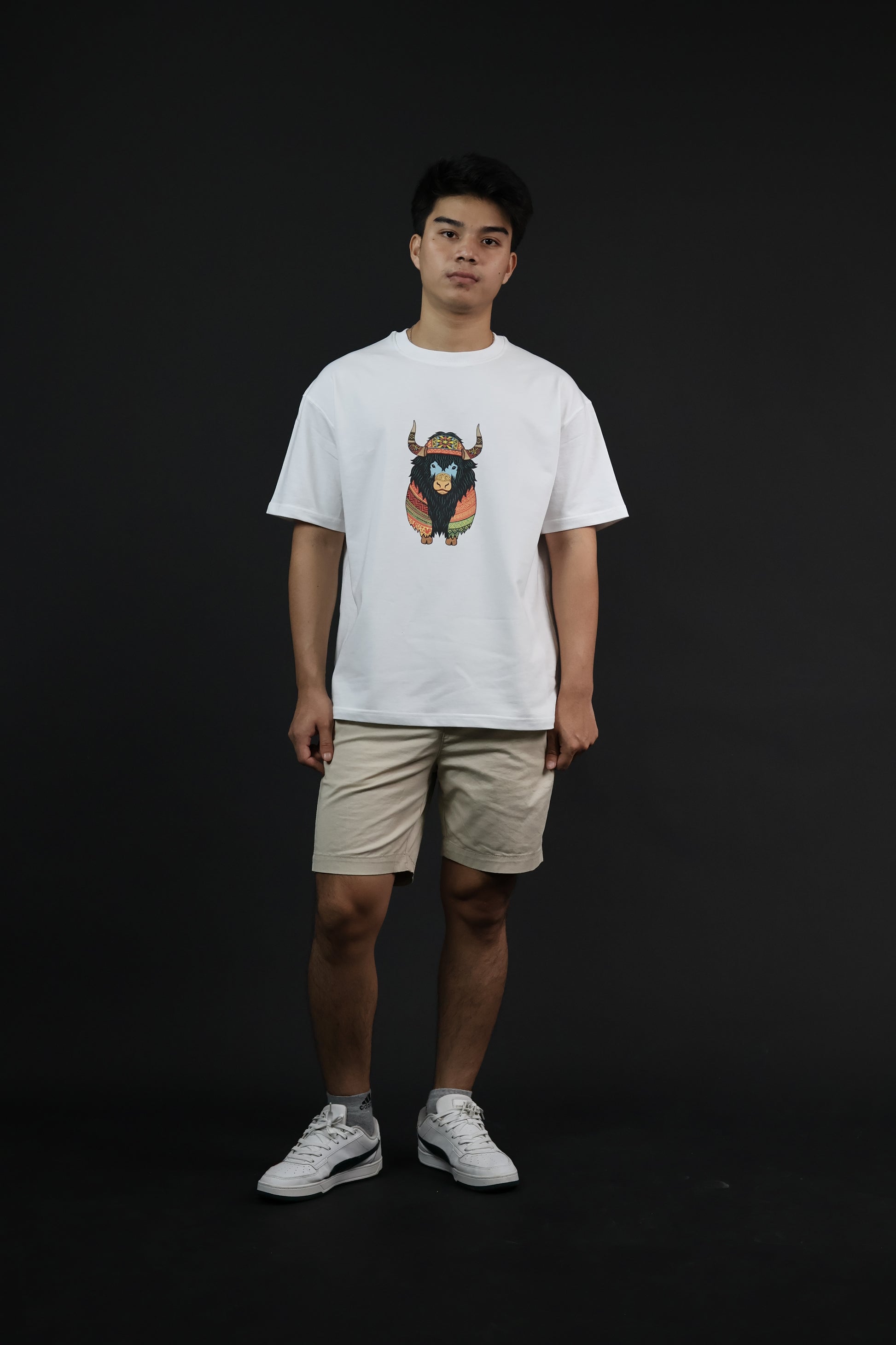 Inspired by the strength and pride of Arunachal Pradesh, this T-shirt showcases the majestic Mithun—revered as a symbol of prosperity—blended with intricate traditional motifs. Crafted from premium french terry cotton, it’s more than just a tee; it’s a tribute to the roots, resilience, and heritage of the eastern Himalayas. Comfortable, stylish, and deeply cultural, this piece lets you carry a piece of Arunachal’s spirit wherever you go.